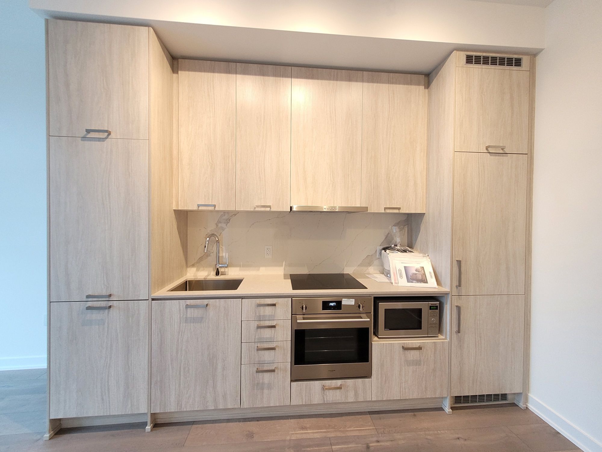 Newer Building – 2 Bedroom unit facing South. Open concept kitchen living room – 680sq.ft., ensuite laundry, stainless steel kitchen appliances included. Engineered hardwood floors, stone counter tops.