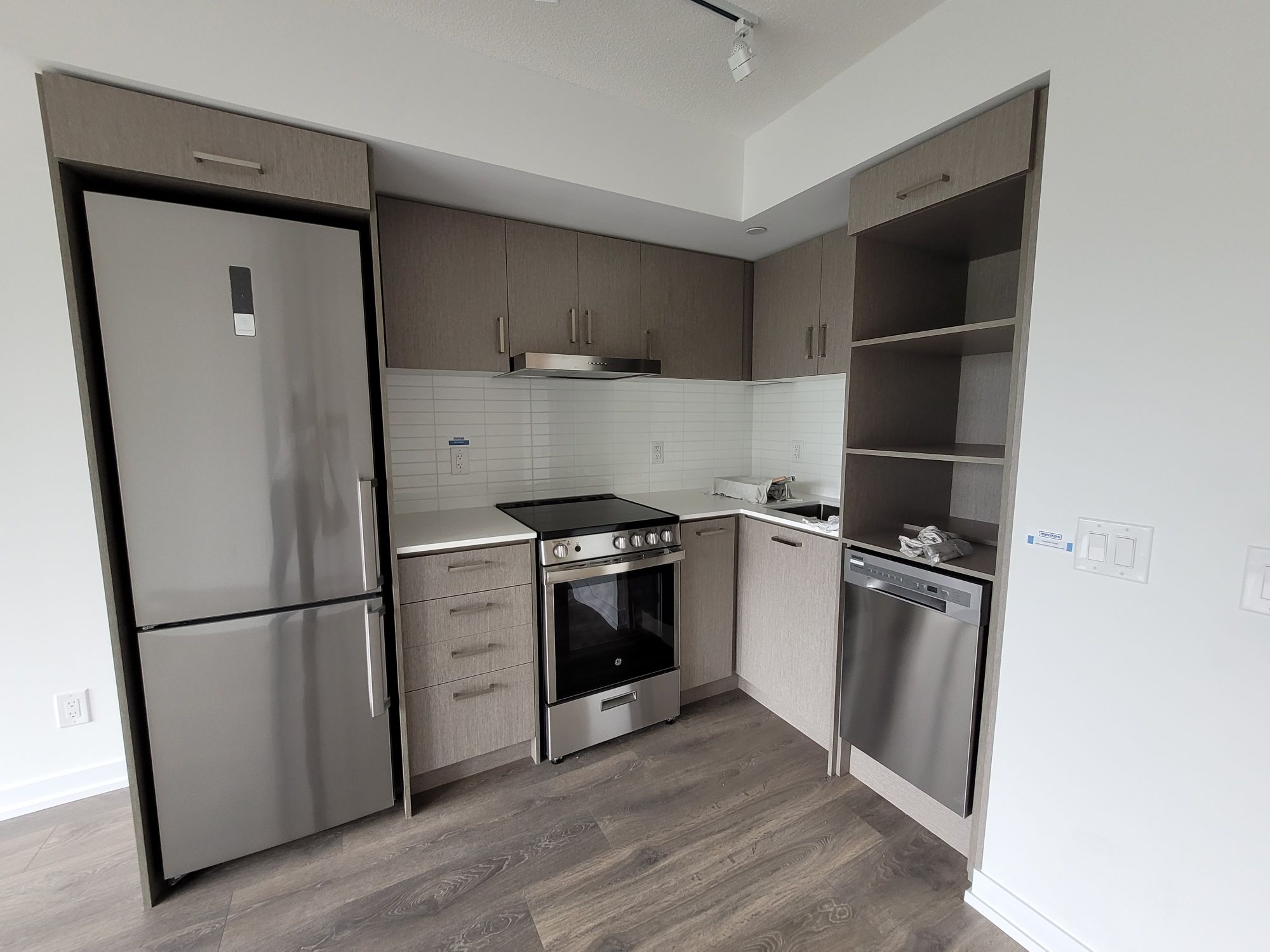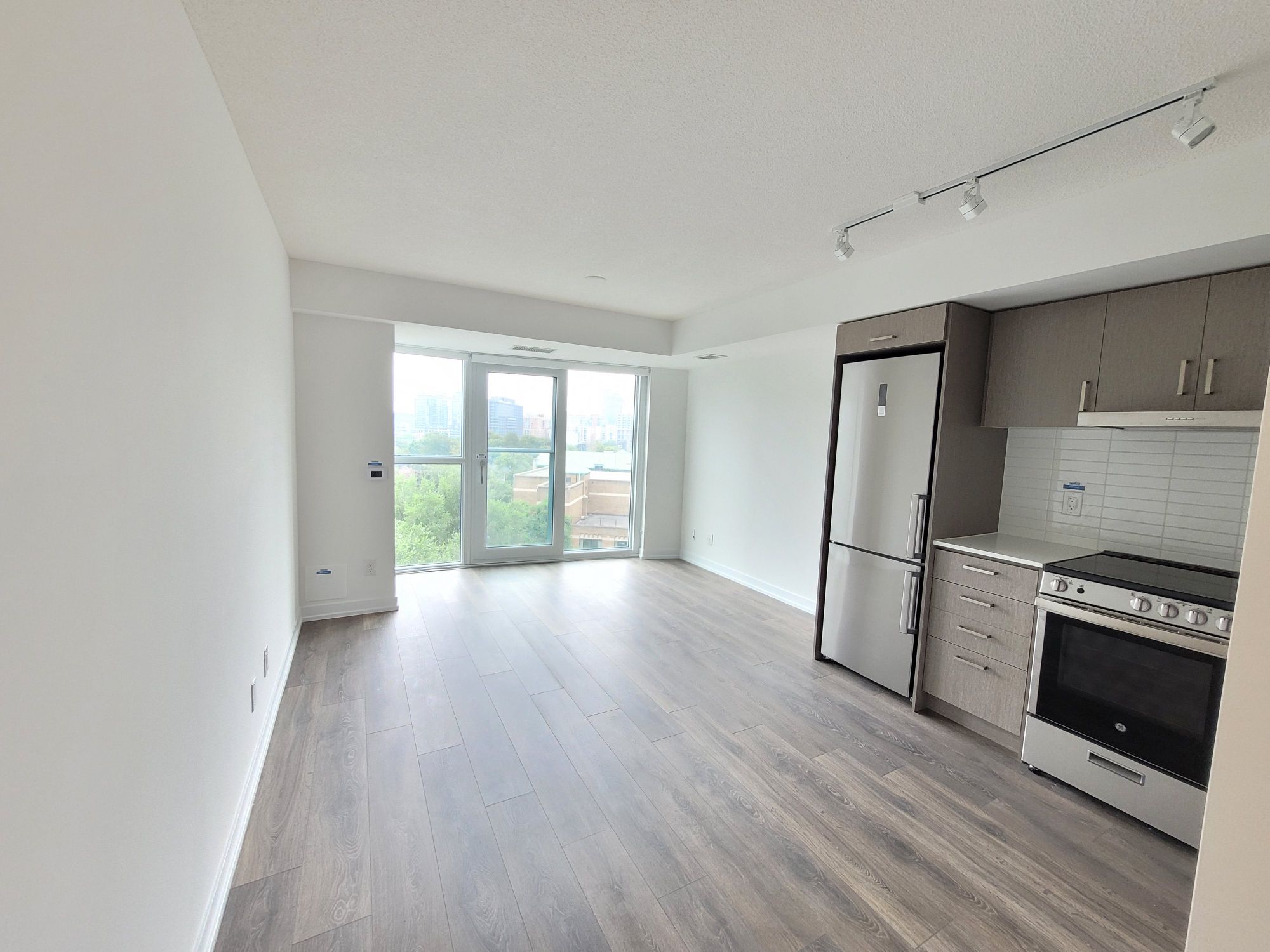 Studio - Open concept kitchen living room – 1 full bathroom, 388 SqFt, Laundry, stainless steel kitchen appliances included. Engineered Hardwood floors, Stone counter tops