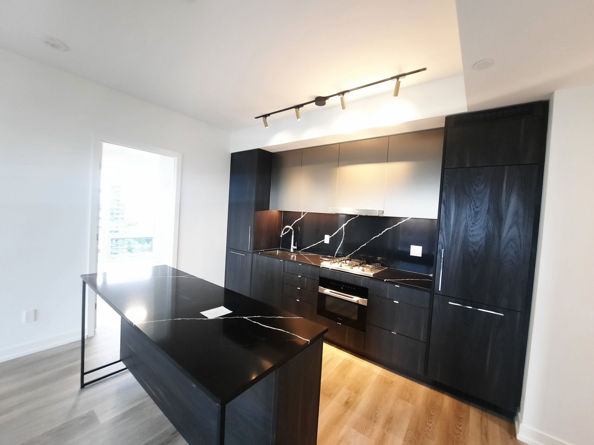 • Gourmet kitchen with built-in integrated appliances (fridge, stove, microwave, dishwasher)