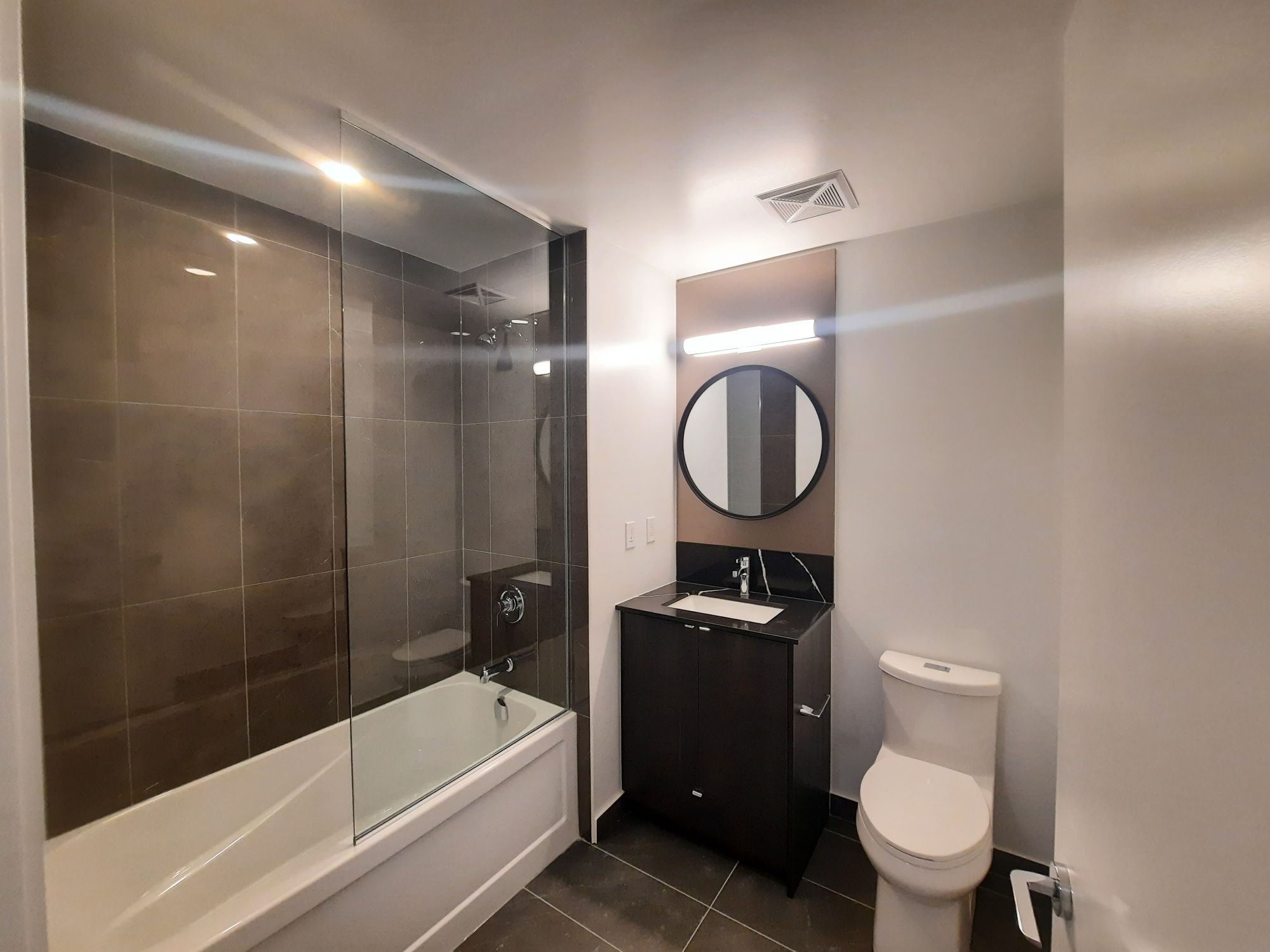 • Open-concept kitchen & living area with sleek, modern finishes